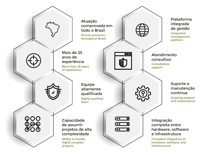 Nosso diferencial está na combinação de engenharia, inovação, atendimento consultivo e uma plataforma integrada que centraliza supervisão, alarmes, acesso, vídeo e automações — tudo em um único ambiente.